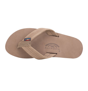 The top sole is premier nubuck leather, and is embossed with the Rainbow® logo. The 1" premier leather strap is double stitched, and the nylon toe piece is secured with a box X stitch, all sewn with bonded nylon thread.