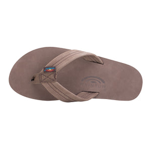 The top sole is premier nubuck leather, and is embossed with the Rainbow® logo. The 1" premier leather strap is double stitched, and the nylon toe piece is secured with a box X stitch, all sewn with bonded nylon thread.