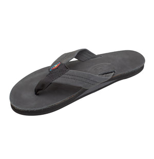 The single layer premier leather sandal is made with top grade nubuck leather; the top sole is embossed with the Rainbow® logo. The 1" strap, also nubuck leather; is double stitched, and the nylon toe piece is secured with a box X stitch, all using bonded nylon thread.