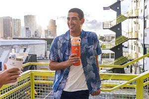 These bold, colorful tumblers are made to keep you hydrated in a fully functional style. Ideal for car commutes or workouts at home, it has a built-in flip straw for easy and effortless sipping. Snap it shut and the double-wall vacuum insulation will keep your drink extra cold for hours. To help you live a sustainable lifestyle, the IceFlow Tumbler is made in part from recycled plastics sourced from discarded fishing nets, sparing our waters of plastic waste. Stanley prevents nearly 100 pounds of waste from entering our waters per every 1,000 IceFlow manufactured.