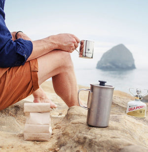 The Titanium French Press is made of Japanese titanium using a historic manufacturing process. The French Press offers an elevated coffee experience, whether at home or in nature. Single-wall titanium can be set directly over a heat source to boil water, simplifying the coffee making process. Pair with the Field Barista Coffee Grinder or buy the Cafe Latte Set.